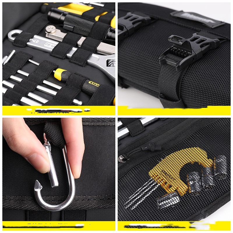 There are 8 reinforced elastic straps in the internal design, which are divided into countless slots of different sizes, and can be used to fix objects and tools of different sizes.